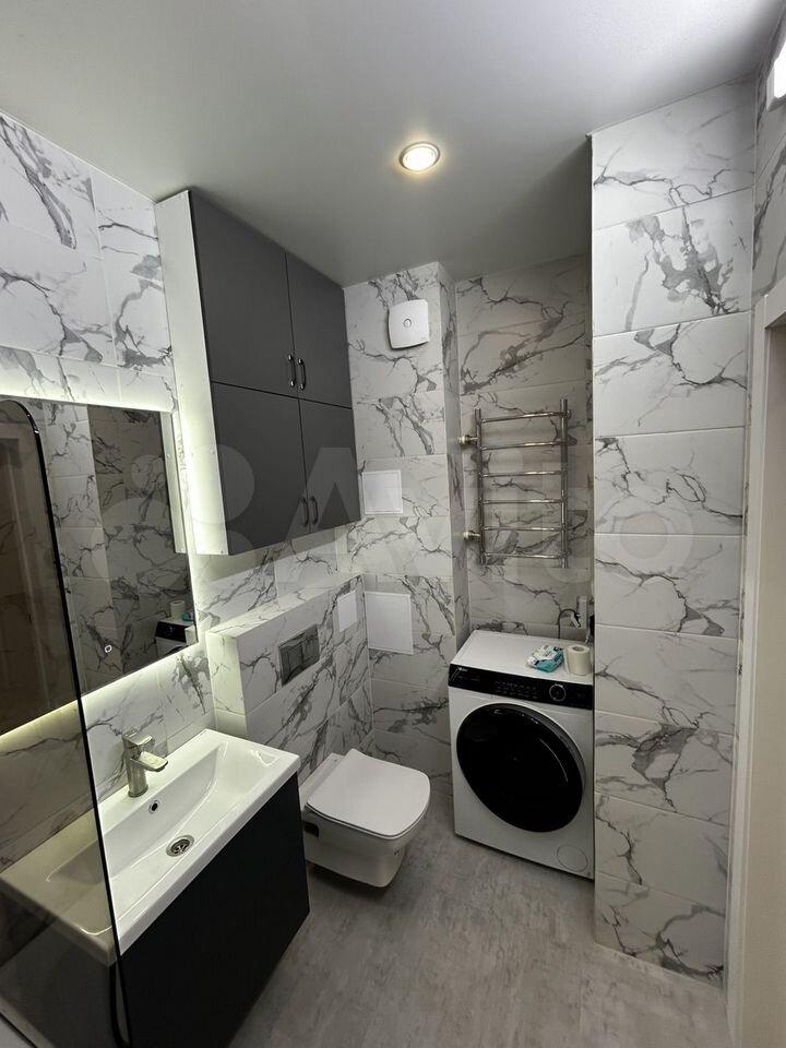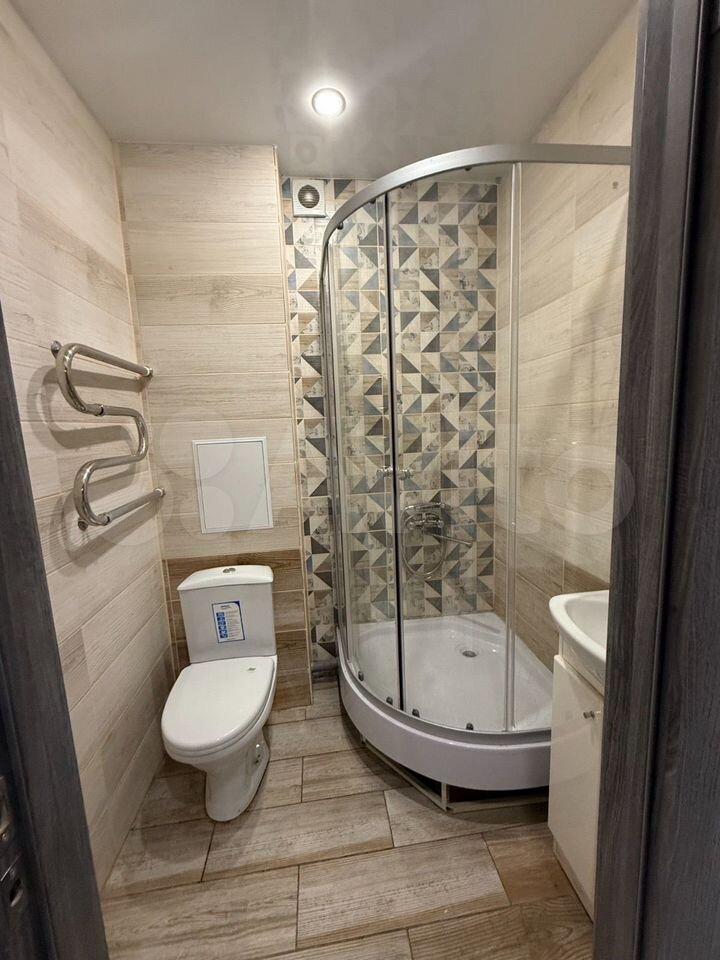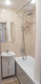 Кухня просторная, оборудована всем необходимым для комфортного приготовления пищи. Посуда, сушилка, гладильная доска в наличии. Санузел совмещенный, оснащен современной сантехникой.