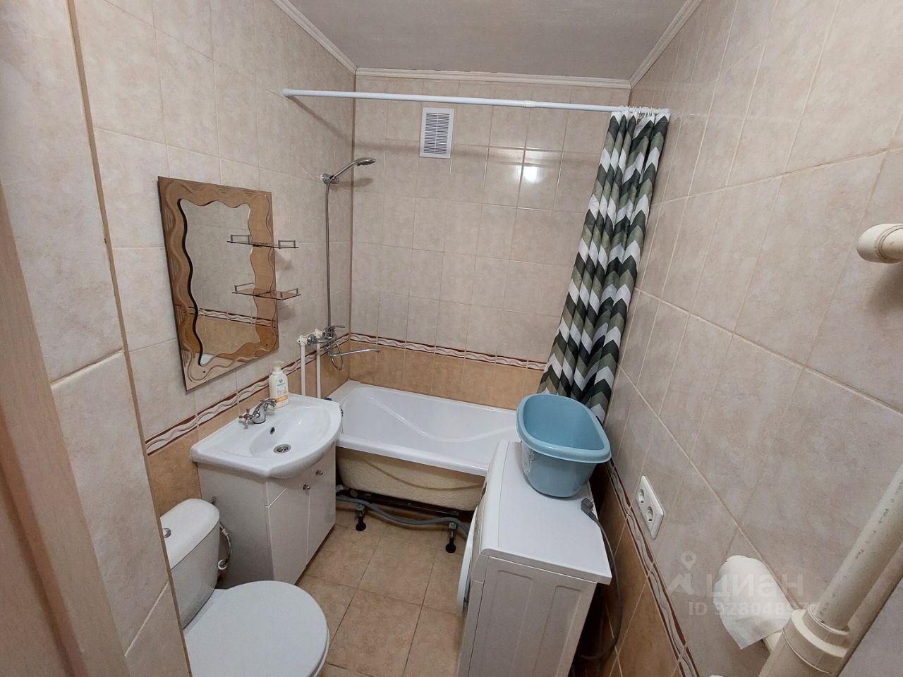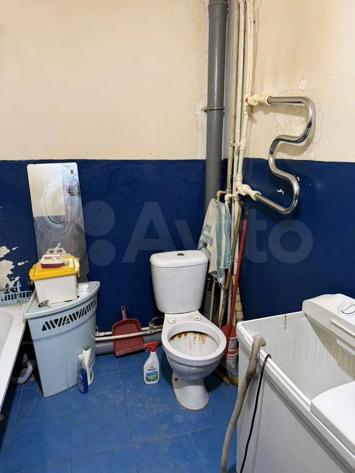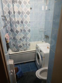 В комнате установлен шкаф и диван, обеспечивая комфортное проживание. Из мебели также имеется гардеробная. Санузел совмещённый, оборудован ванной и стиральной машиной.