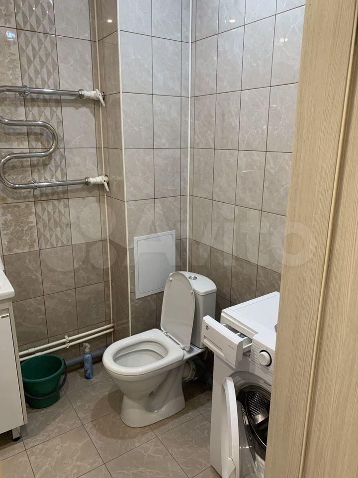 В комнате установлен шкаф и диван, обеспечивая комфортное проживание. Из мебели также имеется гардеробная. Санузел совмещённый, оборудован ванной и стиральной машиной.