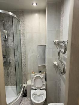 В комнате установлен вместительный шкаф и удобный диван, а также телевизор. Санузел совмещенный, оборудован современной душевой кабиной и всем необходимым для комфортного проживания.
