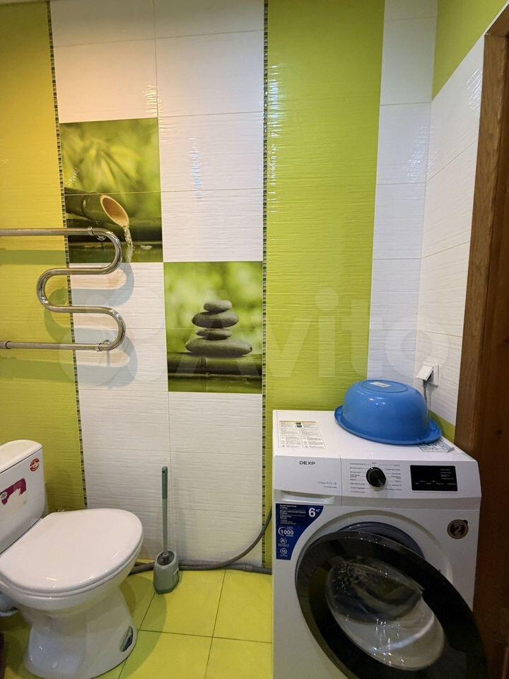 Санузел раздельный, оборудован стиральной машиной. В комнате установлена кровать, комод и шкаф. Лоджия застеклена.