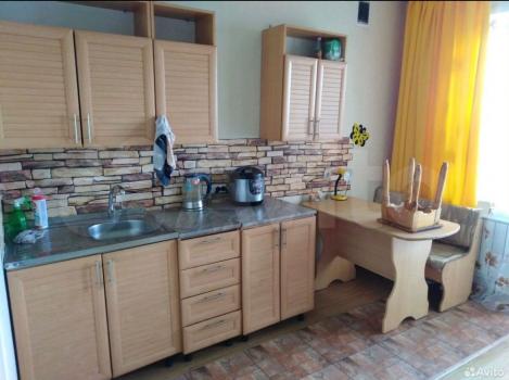 санузел - совмещённый, мебель - кухня, хранение одежды, спальные места, холодильник, плита, стиральная машина.