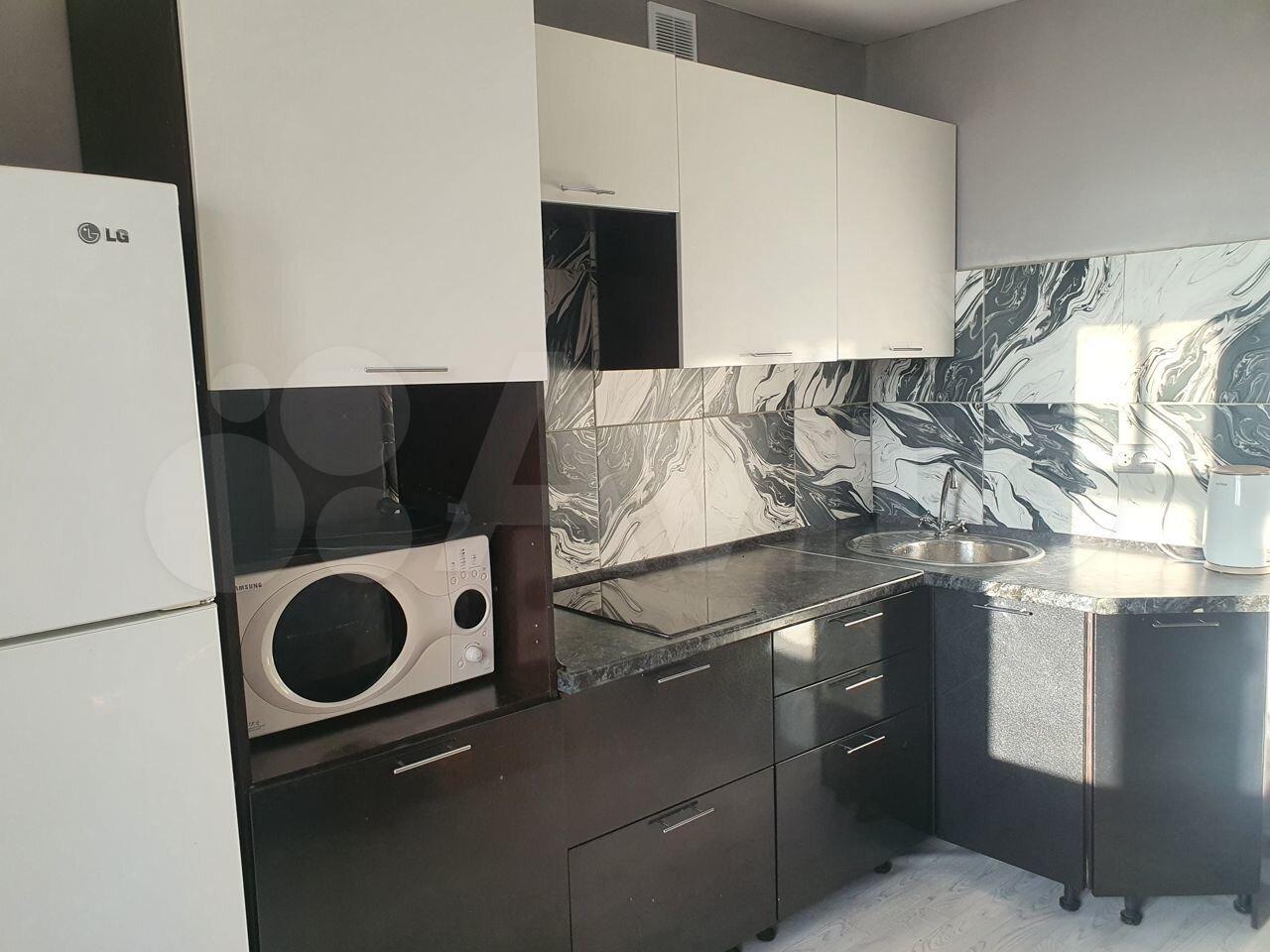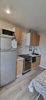 В квартире сделан евроремонт, поэтому она выглядит современно и стильно. Есть всё необходимое для комфортного проживания: на кухне и в комнате установлена мебель, в ванной комнате — ванна. Из техники в вашем распоряжении холодильник, телевизор, микроволновка и стиральная машина. Санузел совмещённый, что удобно для небольшой семьи или пары.