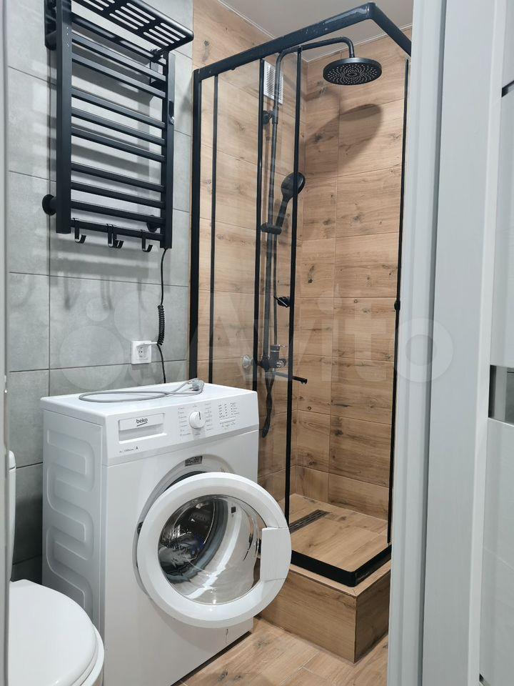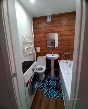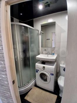 Санузел совмещенный, оборудован ванной и стиральной машиной. В прихожей предусмотрены удобные полки для хранения вещей. В квартире также имеется телевизор.
