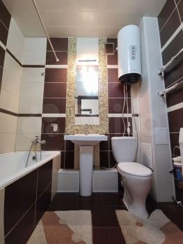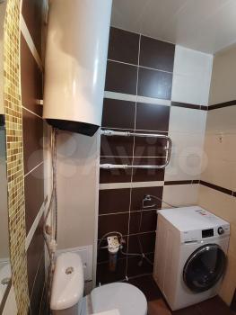 В кoмнaтe установлен вмeститeльный шкaф и тeлевизор. Из мебели также имеется удобный диван. Кухня оборудована необходимой техникой: плитой и холодильником. Санузел совмещенный, оснащён стиральной машиной.