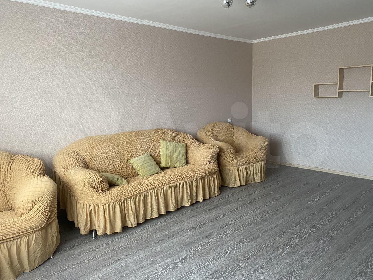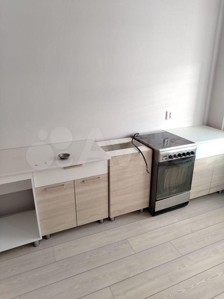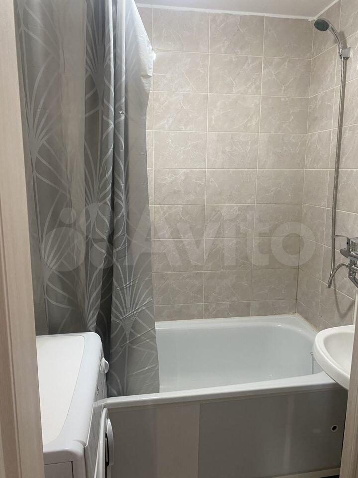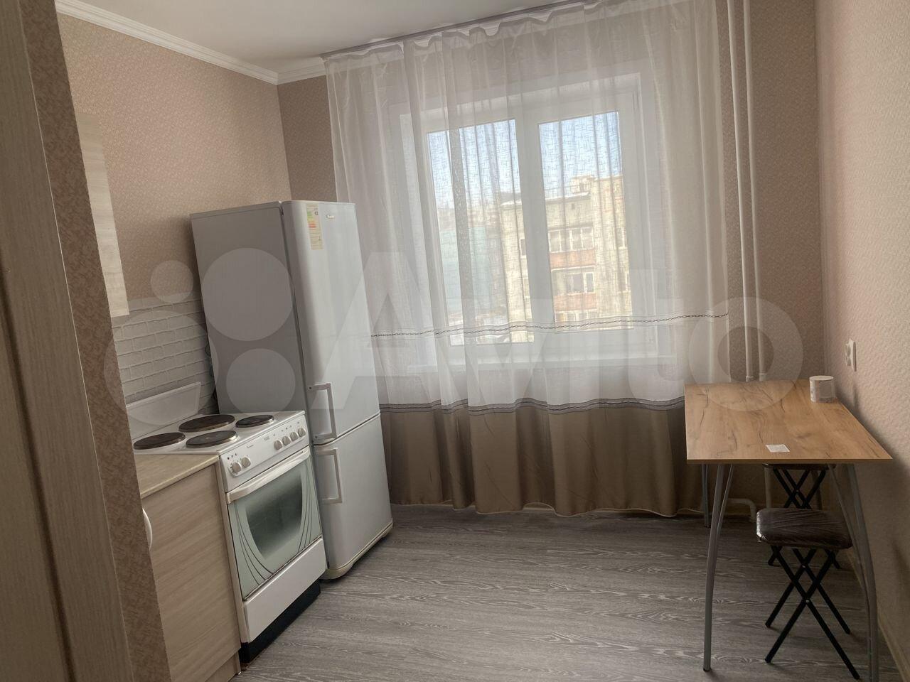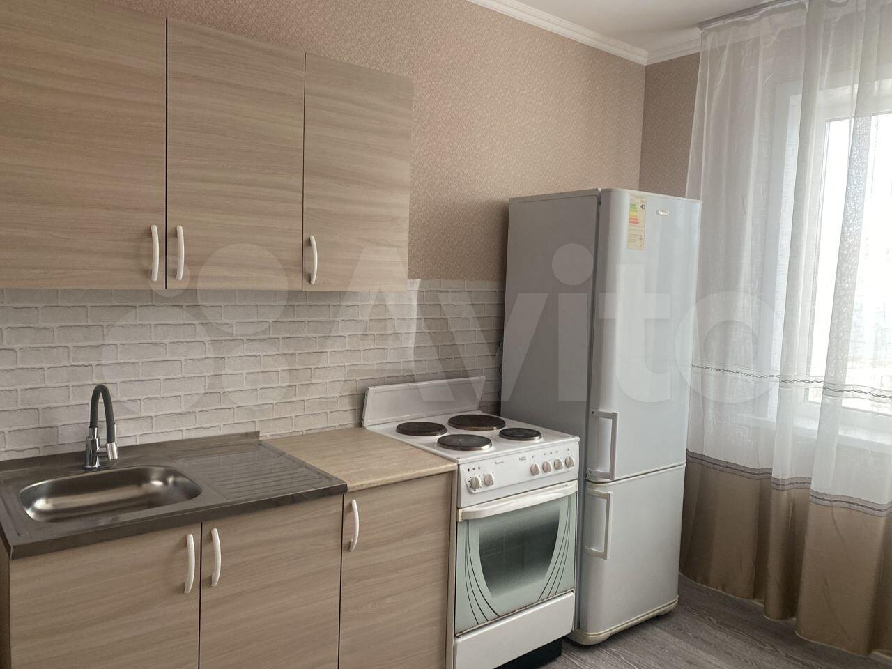Квартира новая. В комнате и на кухне есть вся необходимая мебель.Из техники — холодильник и стиральная машинка.