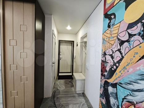 Хранение вещей: Вместительный шкаф-купе с зеркальными дверцами в пол, который визуально расширяет пространство, а также дополнительные системы хранения в прихожей.