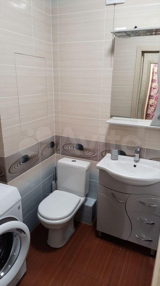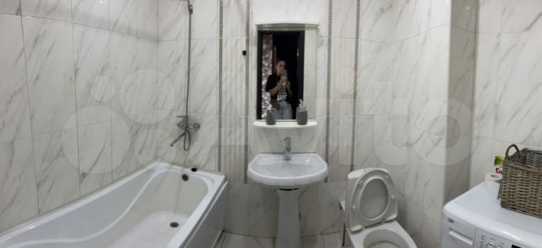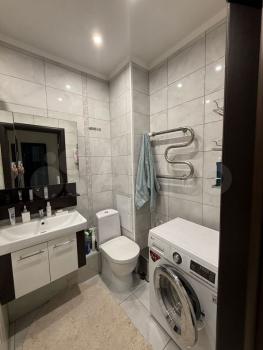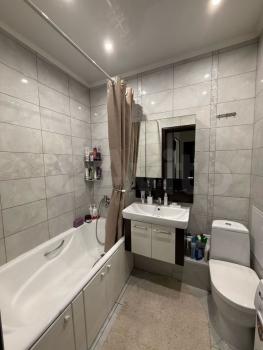 Санузел совмещенный, выполнен в светлых тонах. Из окон открывается приятный вид на город. Лоджия застеклена и утеплена, что позволяет использовать ее круглый год.