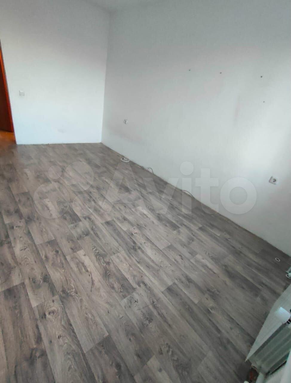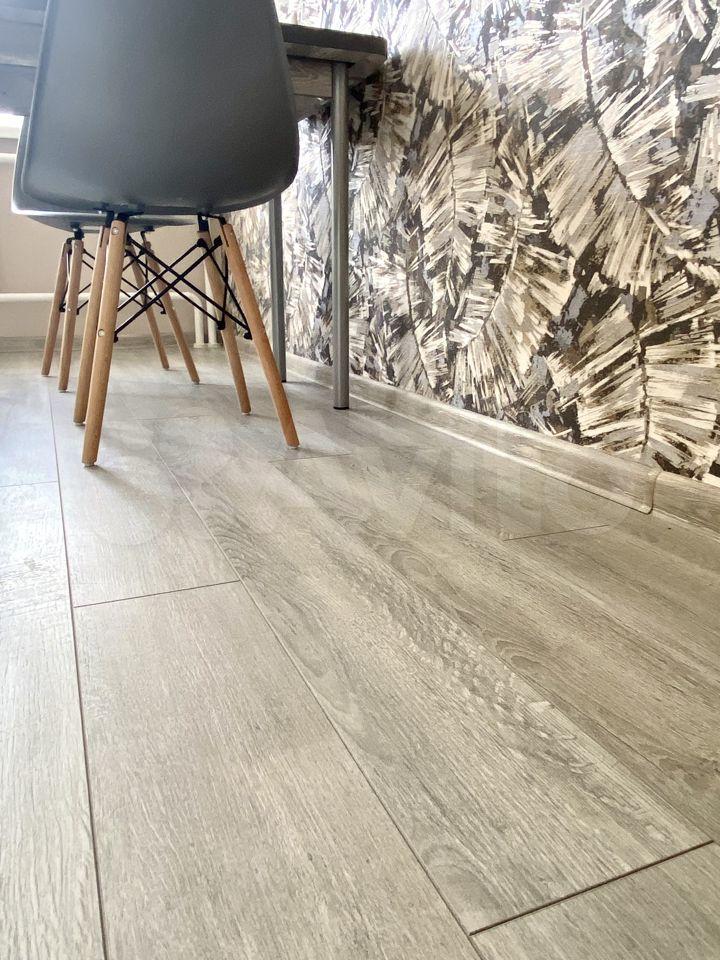 По всей квартире постелен ламинат 33 класса, спокойного , серого цвета.