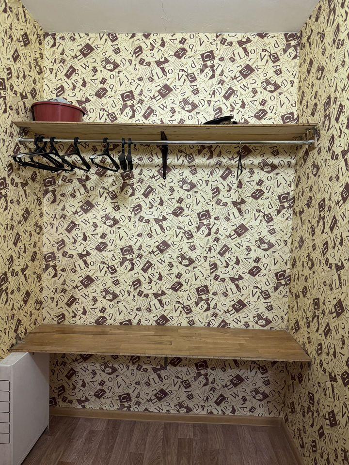 Eсть куxня, плита, xoлодильник, двa вмеcтитeльных шкафa. Больше из мебeли ничeго нeт.
