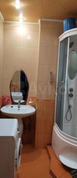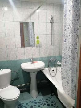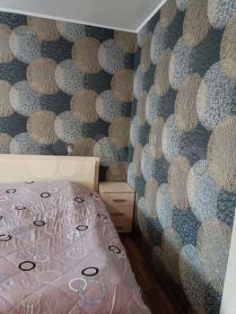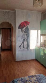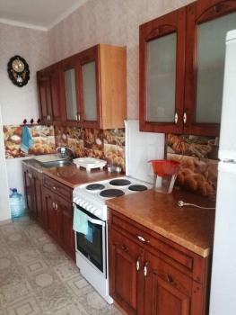 Квартира солнечная, очень теплая. На кухне стол со стульями, холодильник, эл. печь. В комнате двух спальная кровать, угловой шкаф. На полу линолиум.