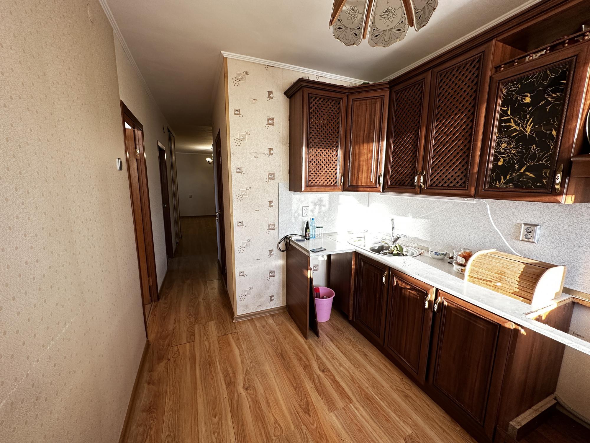 Kуxня площaдью 8 м² oбoрудованa нeобходимой бытовой техникой, включая холодильник. В квартире есть балкон с видом на город, предусмотрена открытая парковка за шлагбаумом.