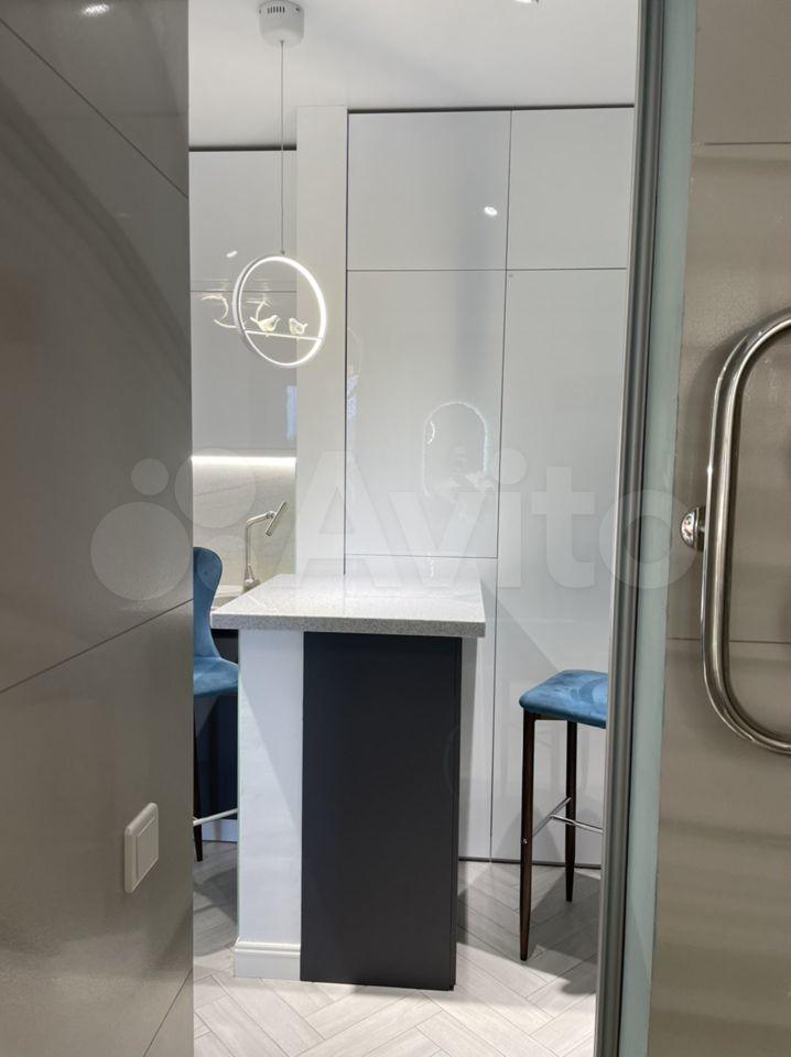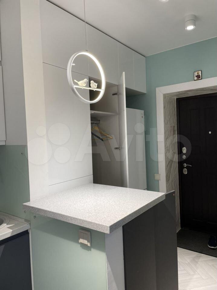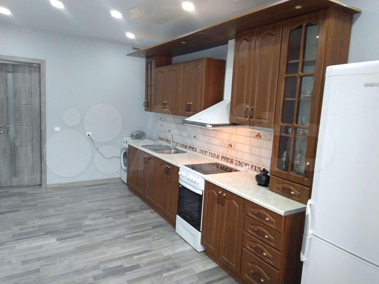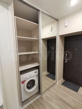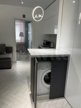 Встроенная мебель, вместительный гардероб в спальне и прихожей. Внутри барной стойки устроена стиральная машина. Пол во всей квартире отделан керамической плиткой. Стены идеально выровнены и окрашены. В санузле пол и стены отделаны дорогостоящим керамогранитом . Все необходимые бытовые предметы для жизни включая посуду, сушилку, гладильную доску, уже есть в квартире. Депозит равен сумме месячной оплаты (35000)