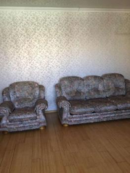 мебель (кухонный гарнитур, спальный гарнитур, раскладной диван, кресла, шкаф в прихожей), бытовая техника (посудомоечная машина, электроплита, двухкамерный холодильник, стиральная машина-автомат, микроволновая печь).