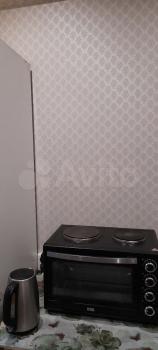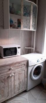 3и комнаты. 3и спальных места (тахта, диван и кровать). Шкафы под вещи. Санузел раздельный. Холодильник, печь, стиральная машинка.