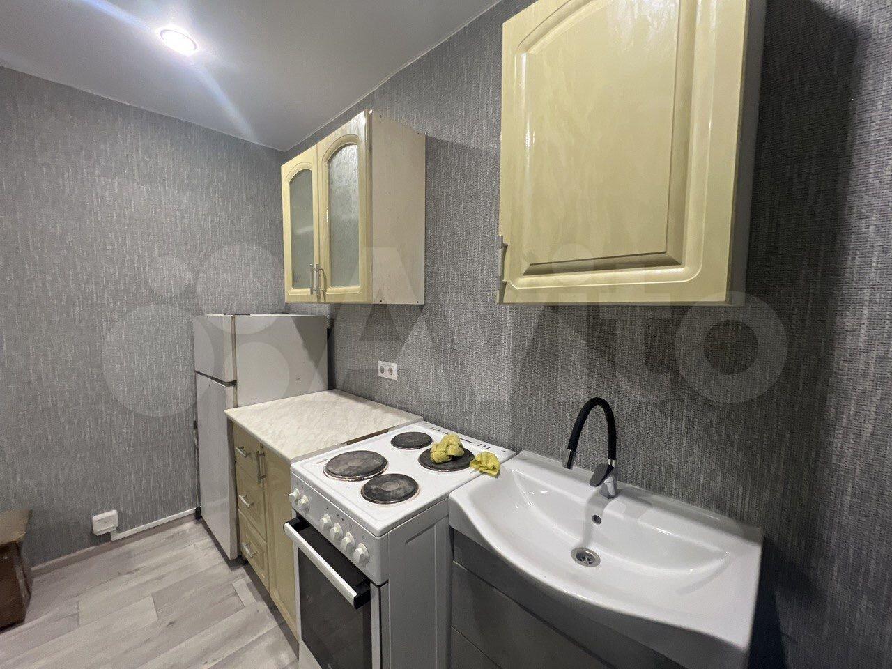 Ремонт косметический (только поклеили новые обои), есть диван, шкаф большой в комнате, шкаф в коридоре, своя кухня, микроволновка, утюг.