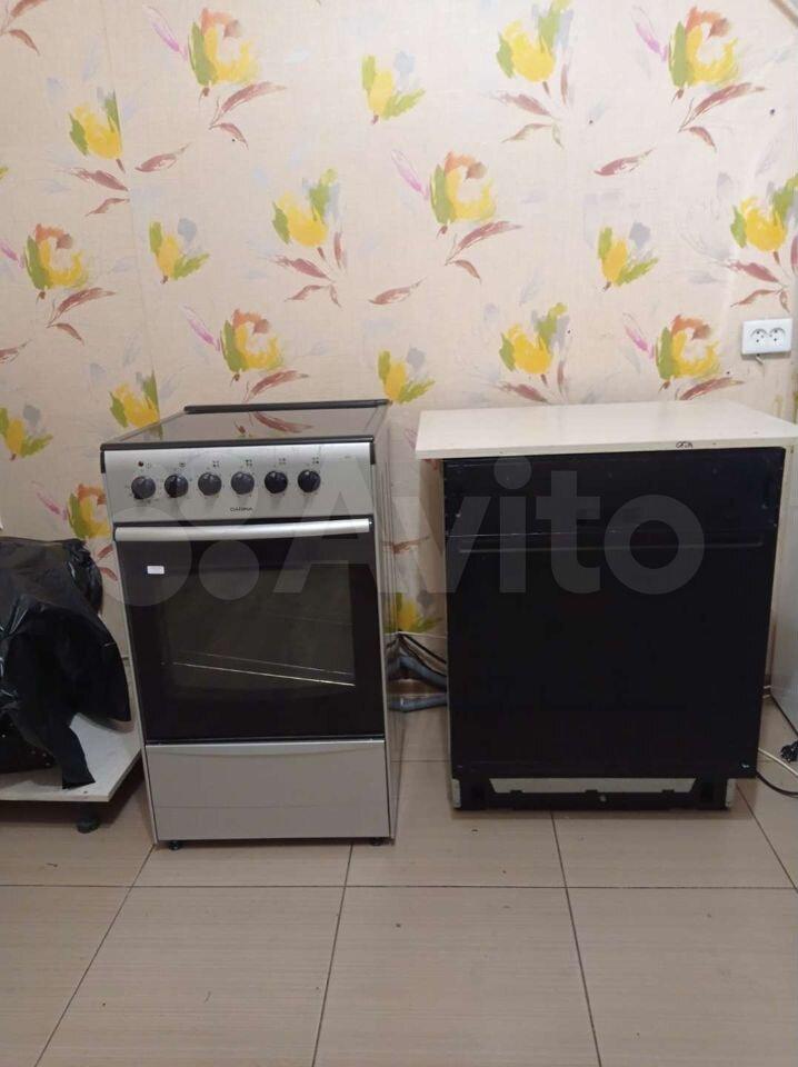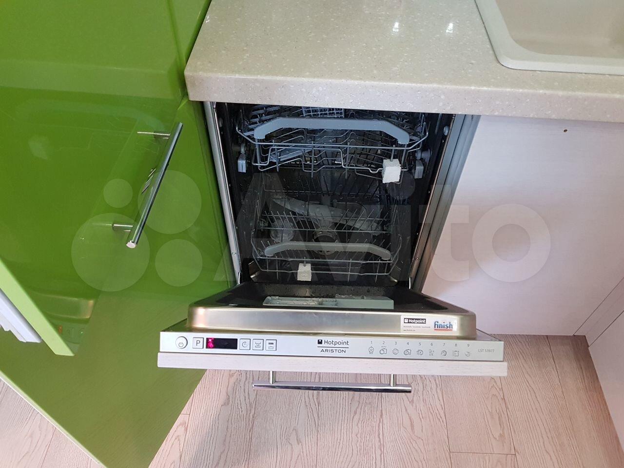 В квартире два дивана, телевизор, холодильник, посудомоечная и стиральная машины.