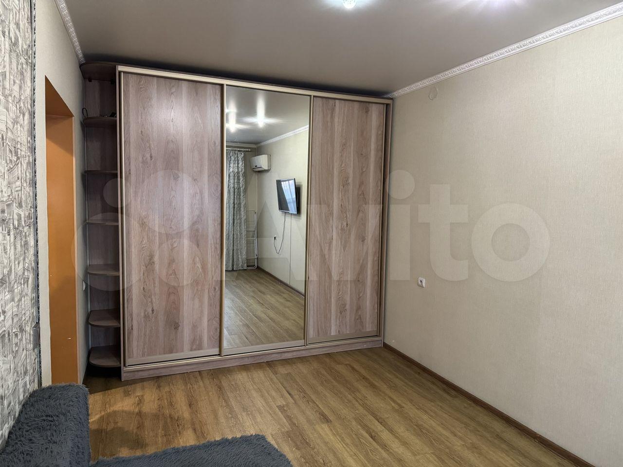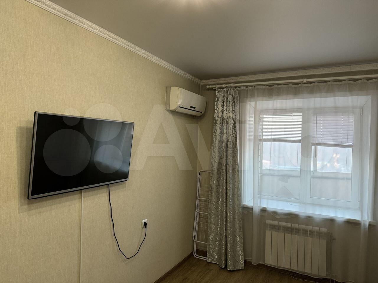 В квартире минимум мебели: диван на кухне с гарнитуром и варочной плитой, шкаф в комнате. В кухне и прихожей на полу линолеум, в комнате ковролин. Телевизор 24-дюйма с МТС-ТВ и интернетом. Соседи приличные люди.