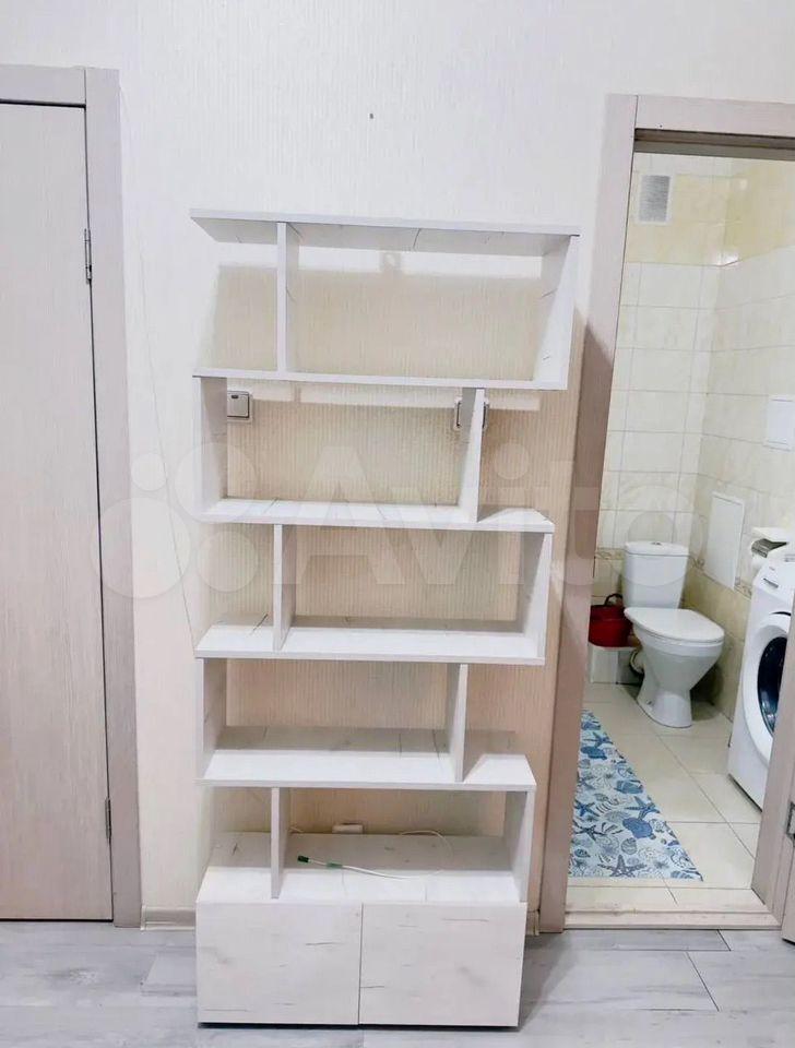 Полностью готова к проживанию — есть гардеробная, вся необходимая мебель и бытовая техника: диван, шкаф, кухонный гарнитур, холодильник, плита, микроволновая печь, стиральная машина.