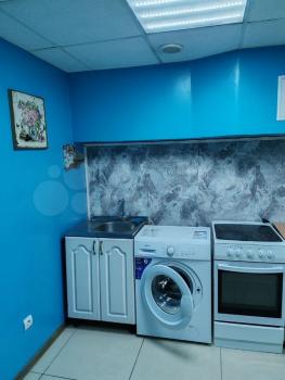 санузел - совмещённый, мебель - кухня, хранение одежды, спальные места, холодильник, плита, стиральная машина.