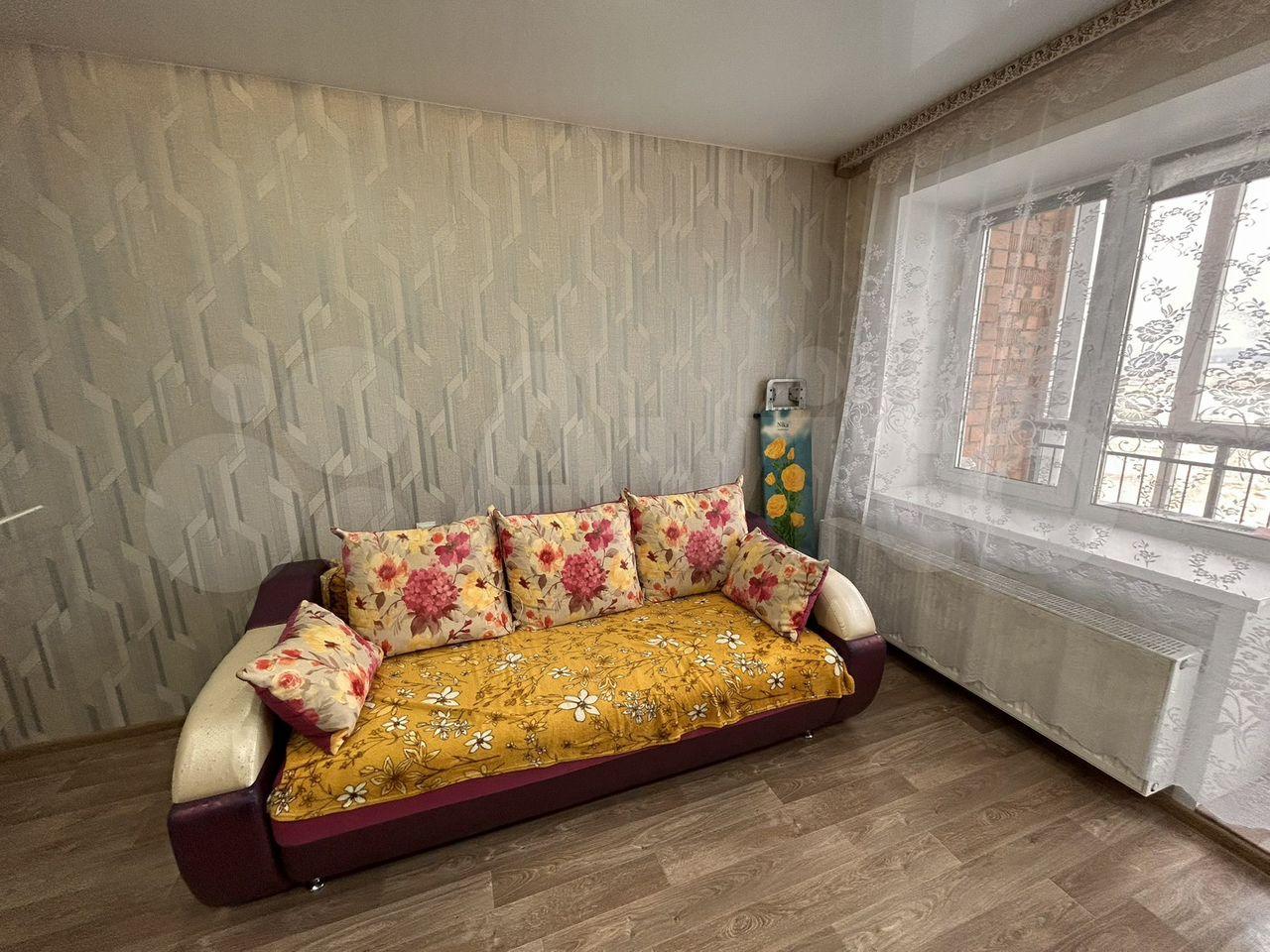В комнате имеется удобный диван тахта и телевизор . Окна выходят на тихий двор, обеспечивая уютную атмосферу.