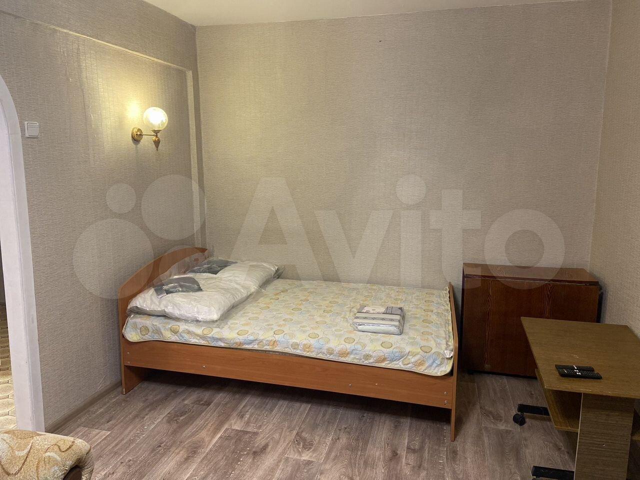 1-ком квартира. В комнате стенка, шкаф, 2 шт 1-сп кровати, телевизор, тумбочка. В кухне гарнитур, плита, стиральная машина, холодильник. С/у совмещен. Залог 9000 руб.