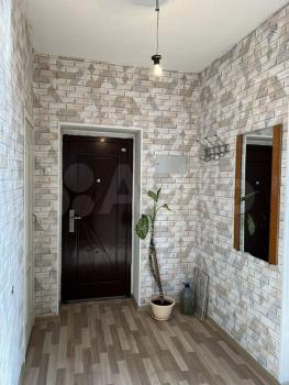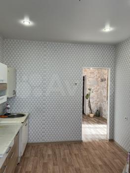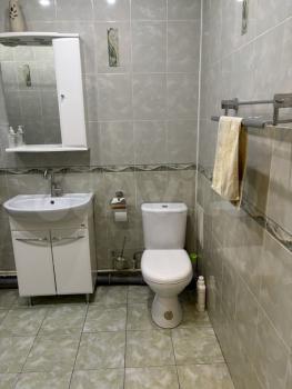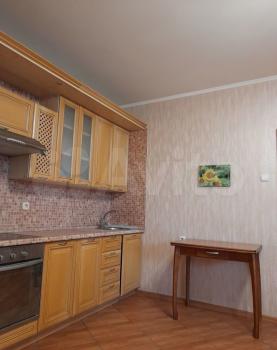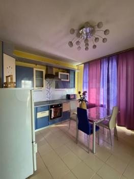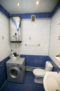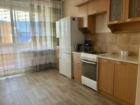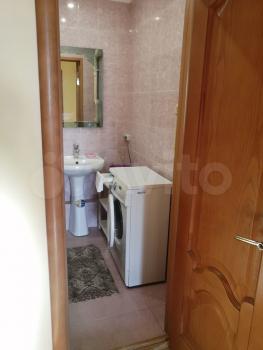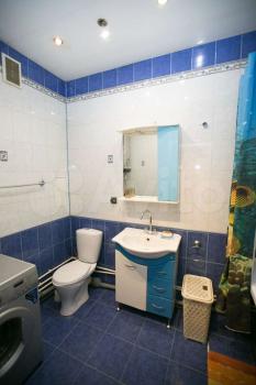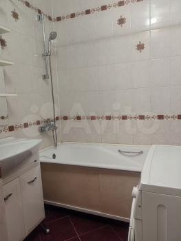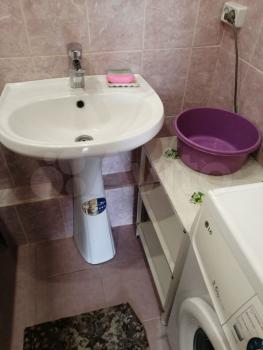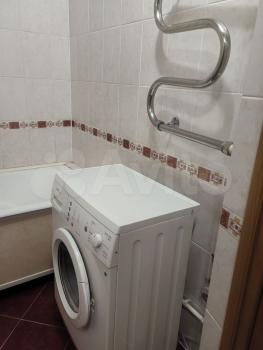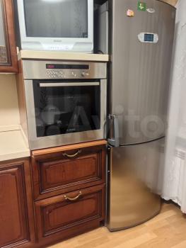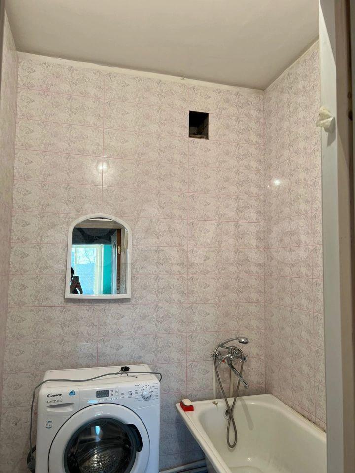 В квартире выполнен косметический ремонт. Просторная кухня оборудована необходимой бытовой техникой, включая холодильник и плиту. Из мебели имеются шкафы и письменный стол. Ванная комната совмещенная, оснащена ванной и стиральной машиной.