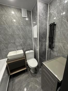 Ванна: новая сантехника, электрический сушитель для полотенец, стиральная машина.