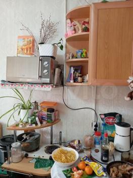 Кухня общая в коридоре (имеется, холодильник, плита, стол, стулья, чайник, морозильная камера).